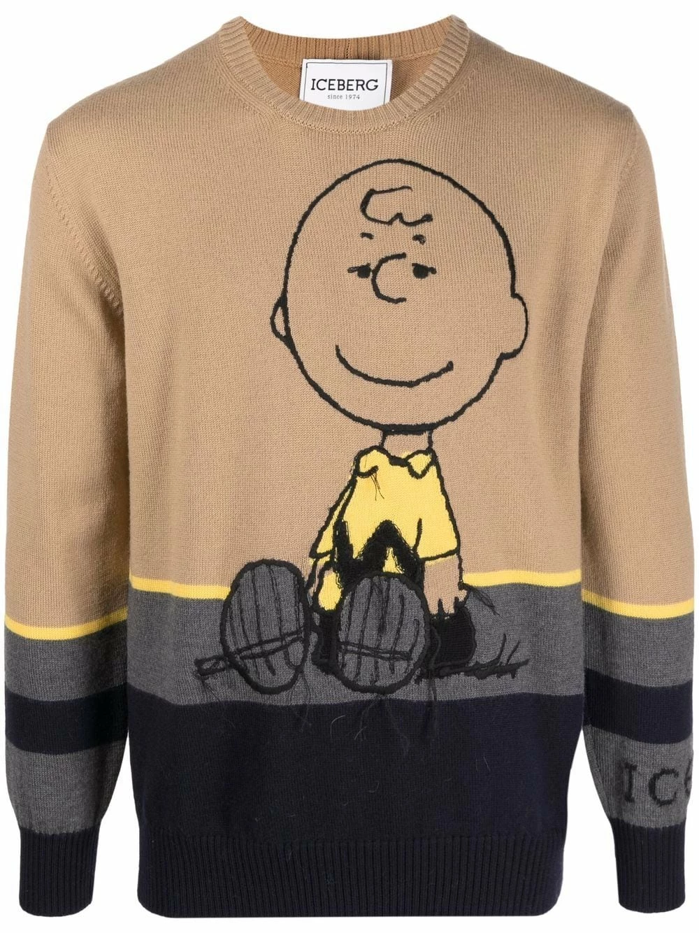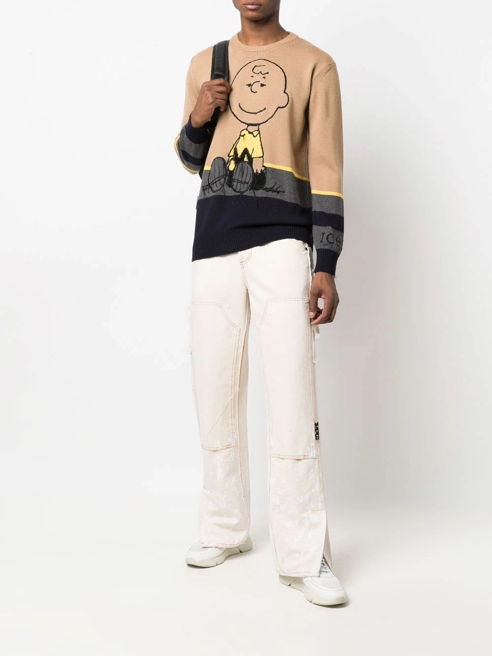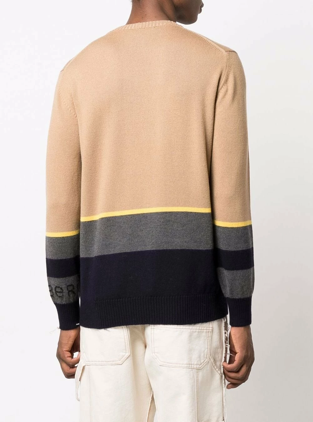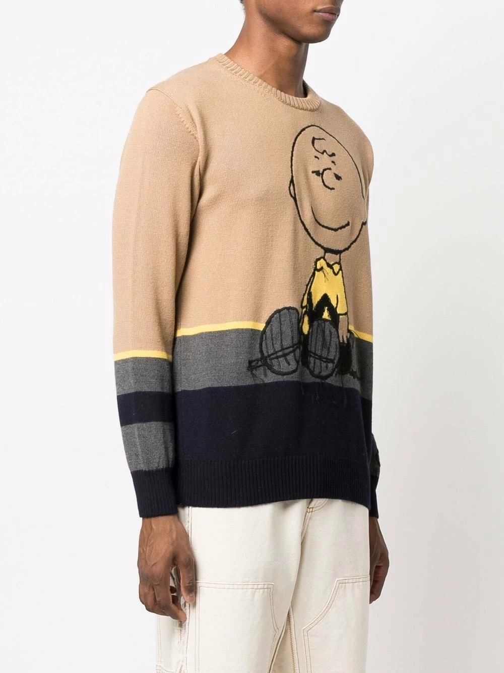 Imprimé graphique, encolure ras du cou, manches longues, ourlet droit. Matière : laine vierge.
