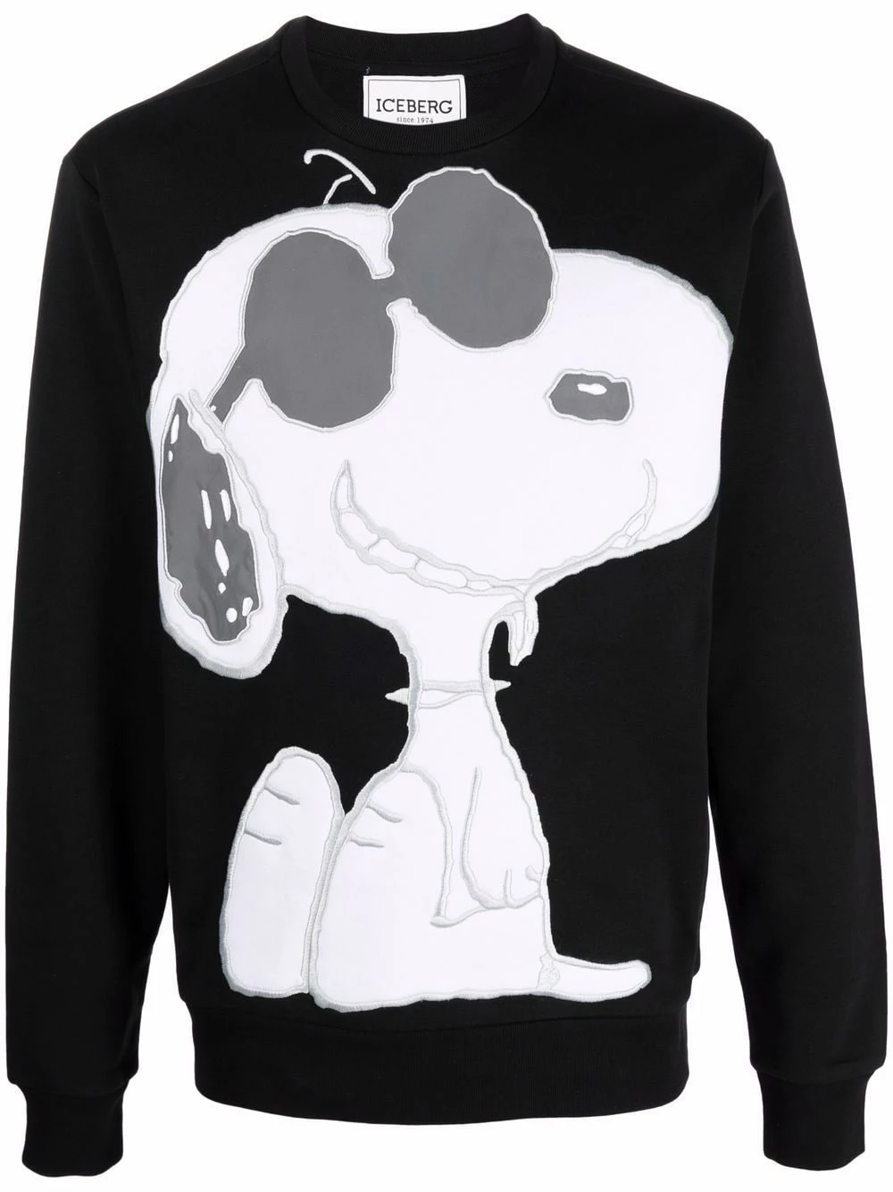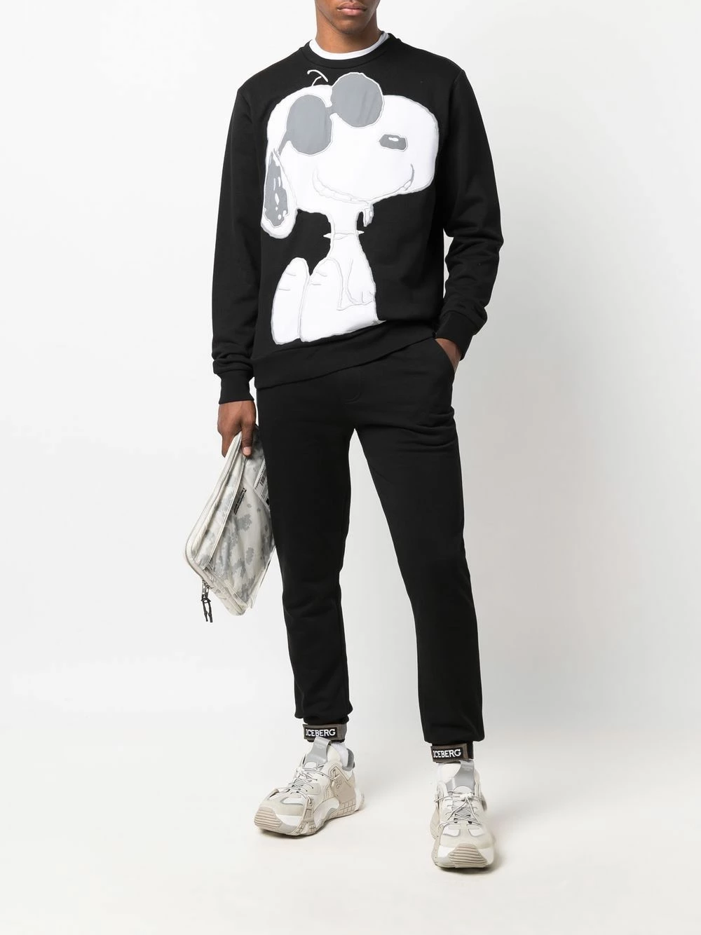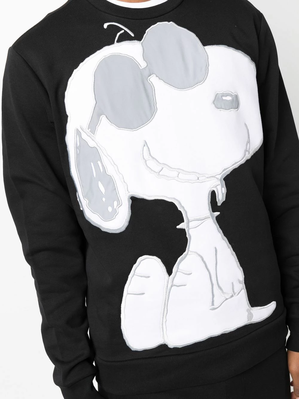 Imprimé graphique sur le buste, bordures brodées, logo embossé au dos, encolure ras du cou, manches longues, branches droites, ourlet droit. Couleur : noir. Matière : coton.