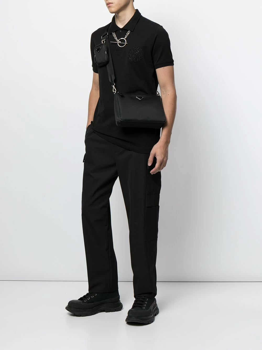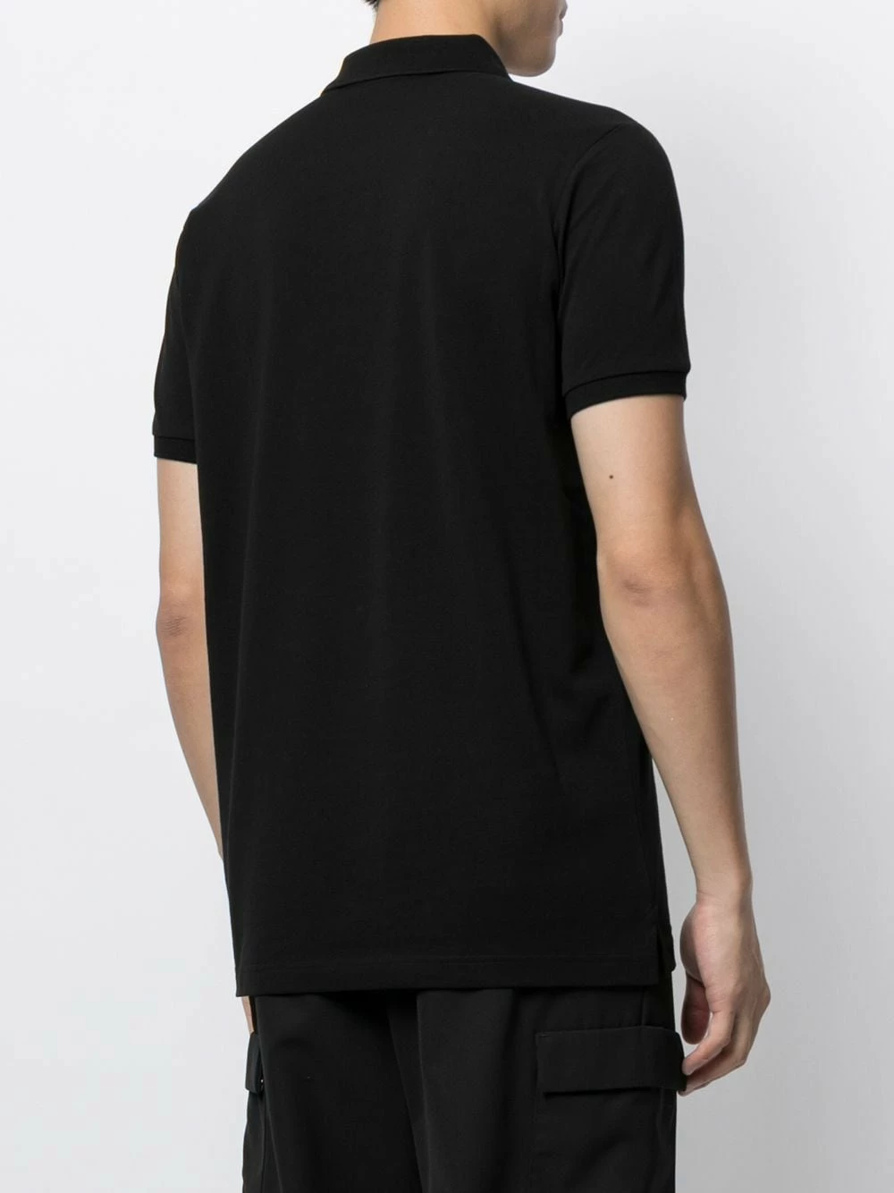 Logo brodé sur la poitrine, col polo, boutonnière sur le devant, manches courtes, ourlet droit. Couleur : noir. Matière : coton.