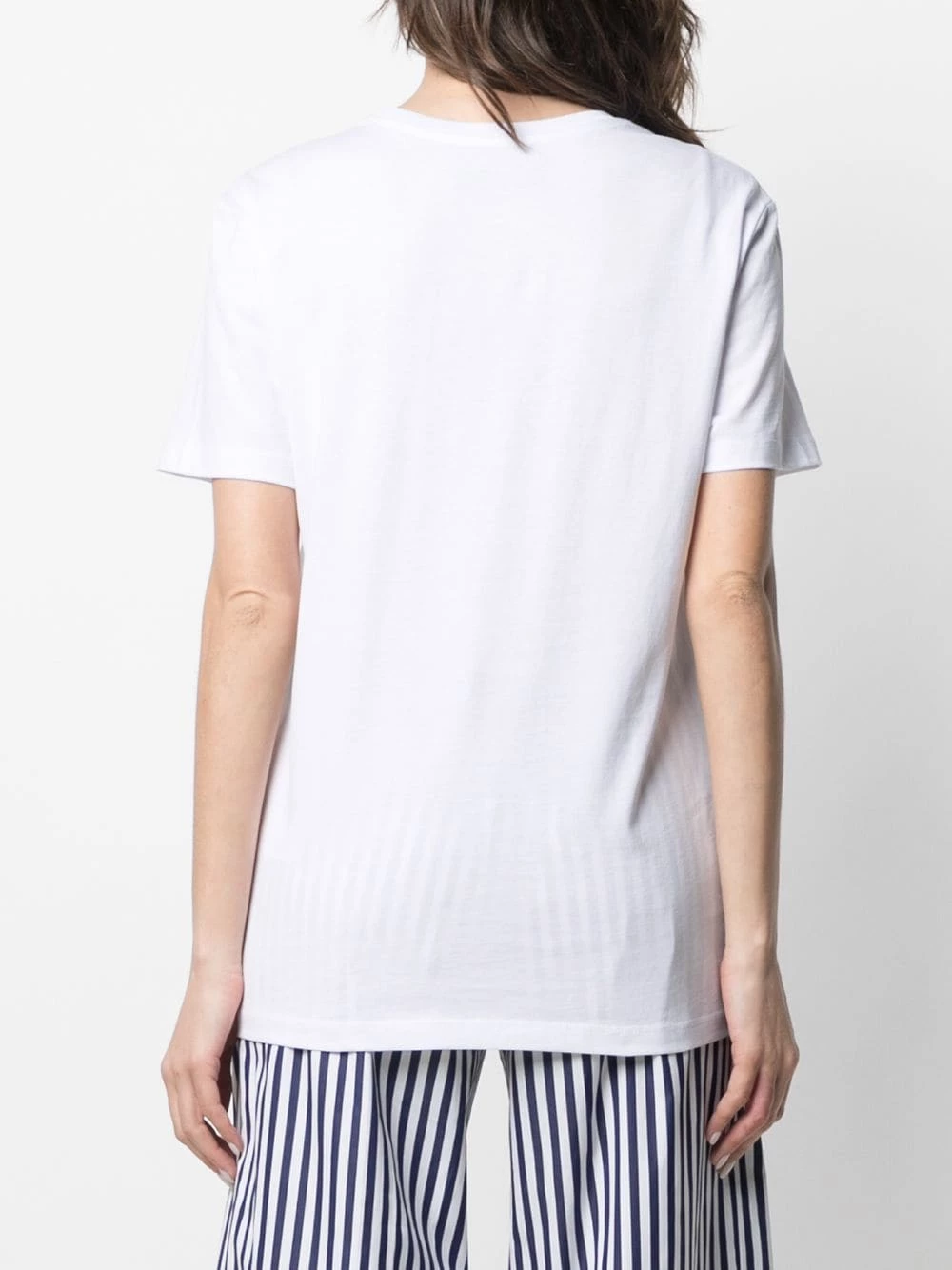 Logo brodé sur le devant, encolure ras du cou, manches courtes. Couleur : Blanc. Matière : coton.