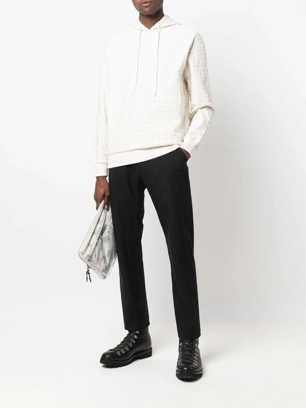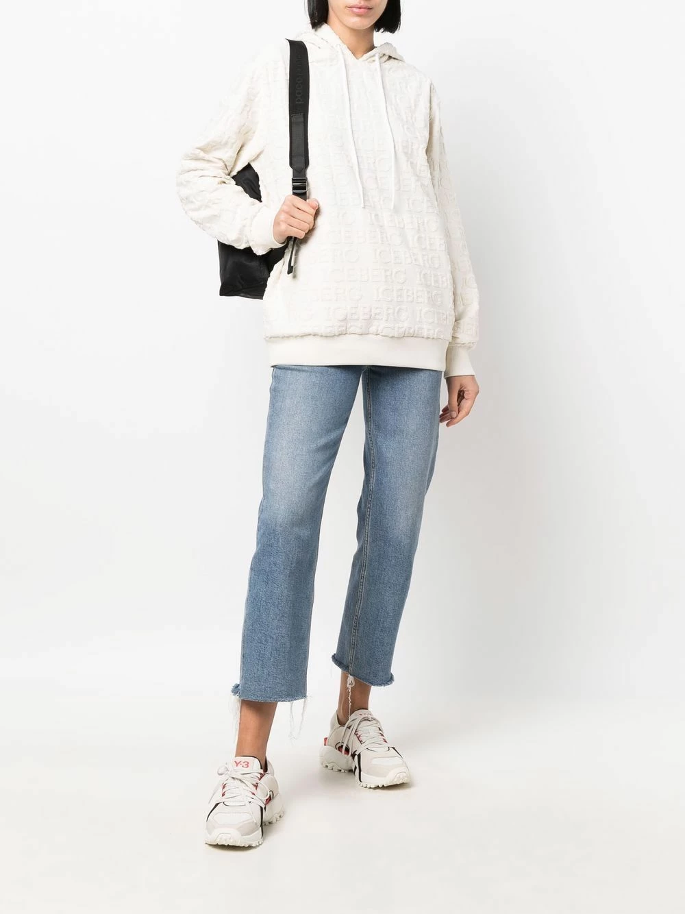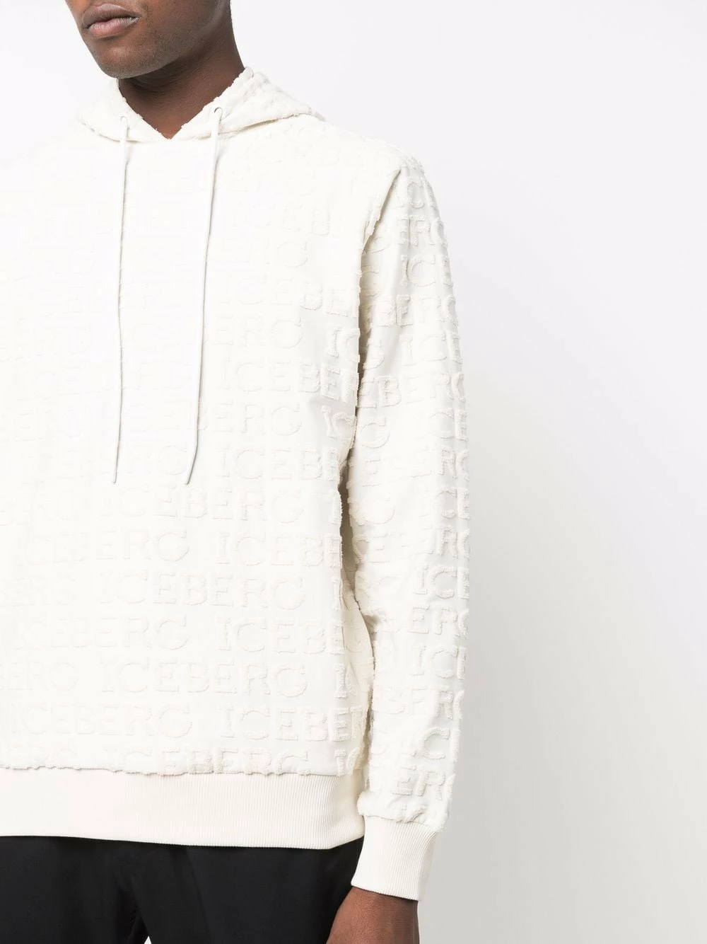 Motif monogrammé embossé, capuche à lien de resserrage, manches longues, ourlet droit. Matière : coton mélangé.