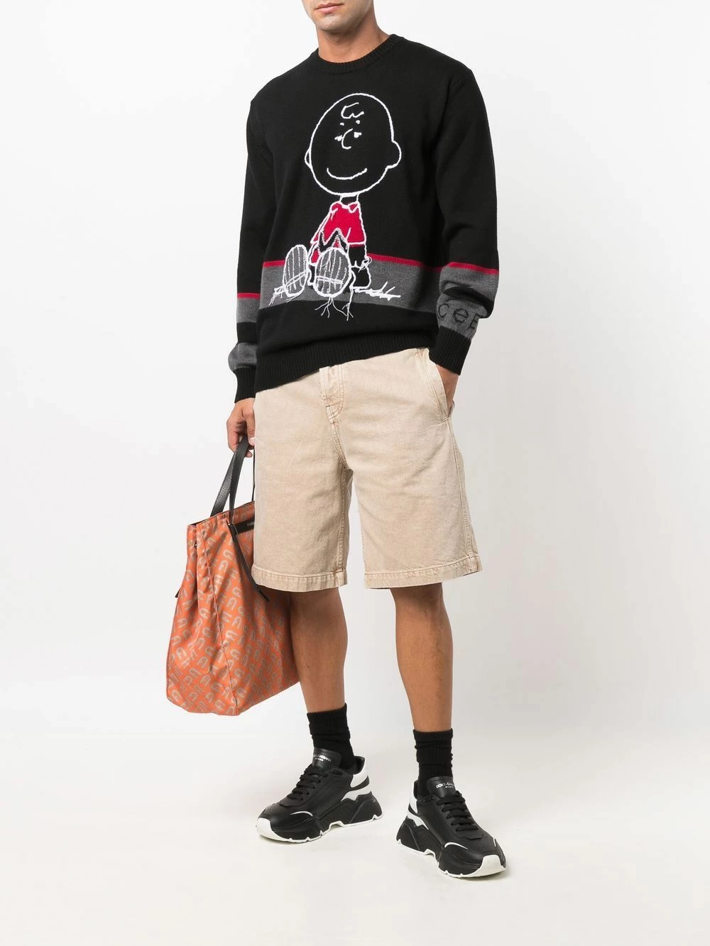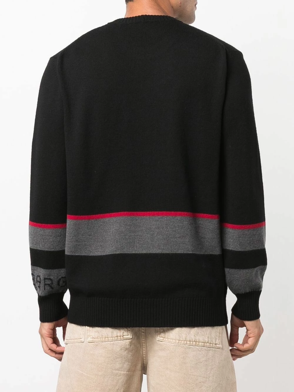 Imprimé graphique, encolure ras du cou, manches longues, ourlet droit. Couleur : noir. Matière : laine vierge.